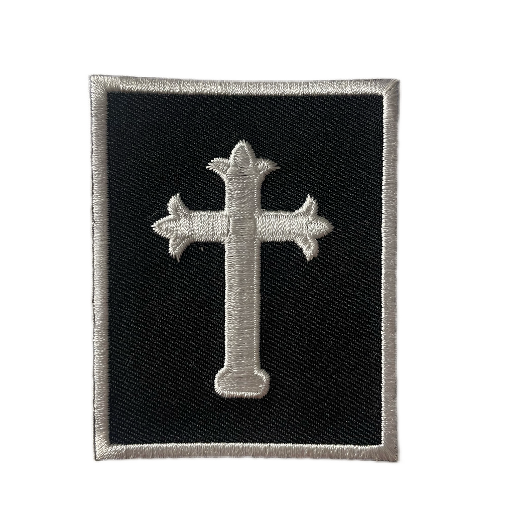Premium Quality Embroidered Iron-On patch with white syriac cross and border