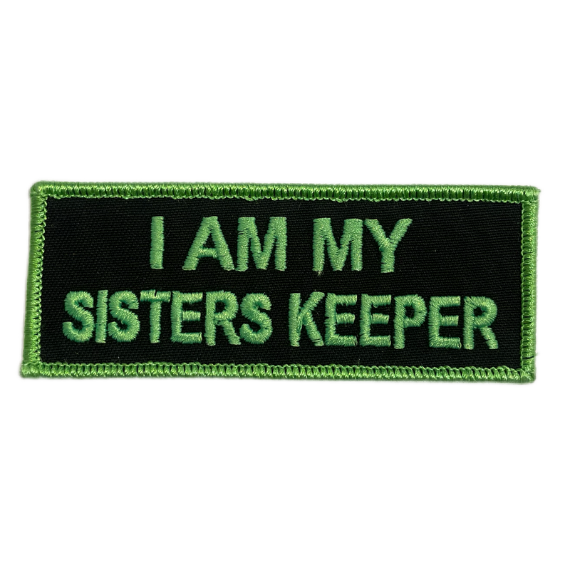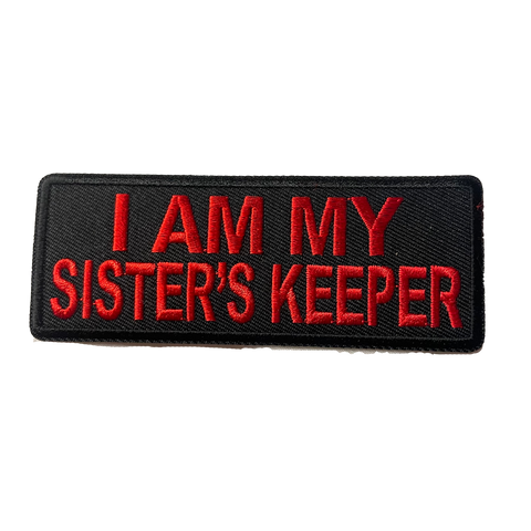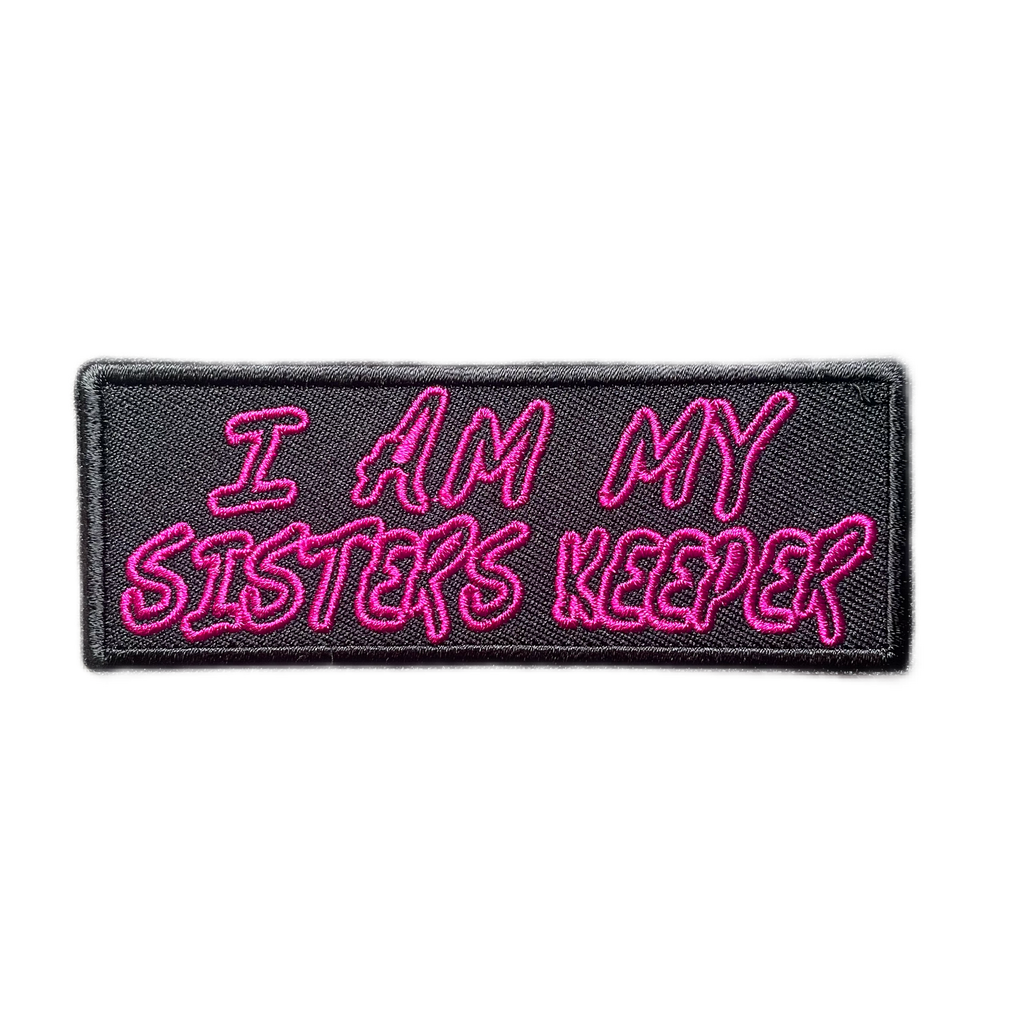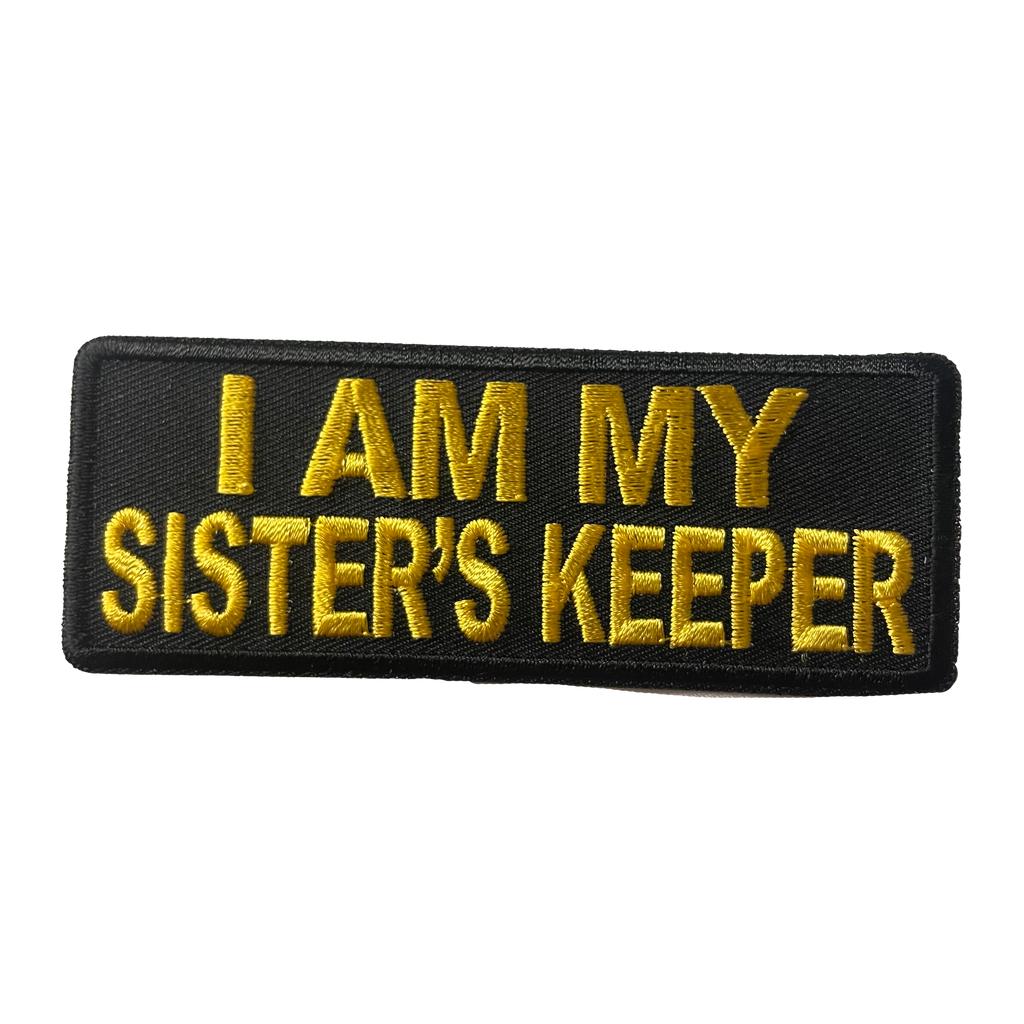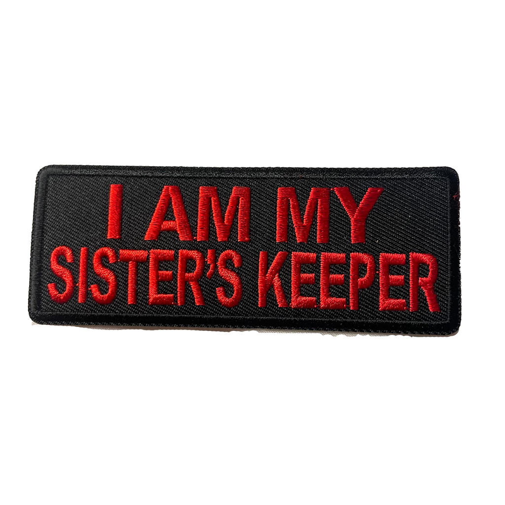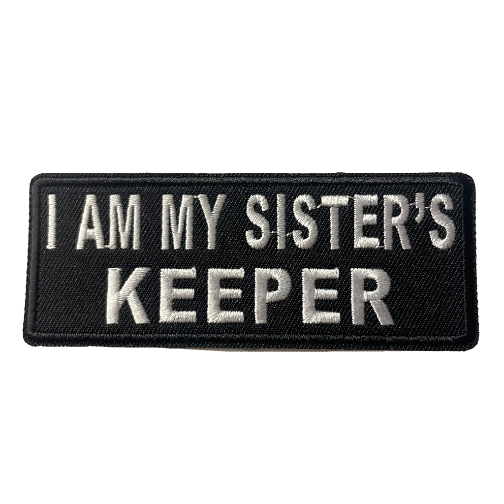Premium Quality Embroidered Iron-On Patch that reads 'I Am My Sister's Keeper'