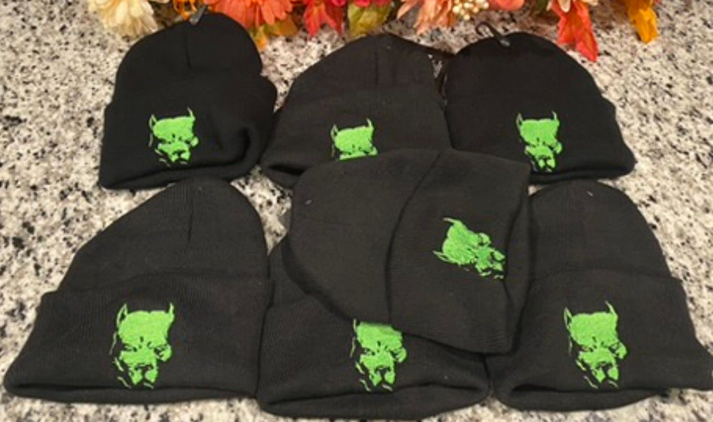 Black-All Black Beanie with Lime Green Dog Head - $20.00 USD
