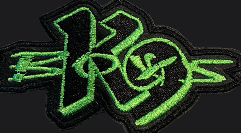 Premium Quality Embroidered Iron-On Patch that reads 'K9 Boyz' in Lime Green lettering